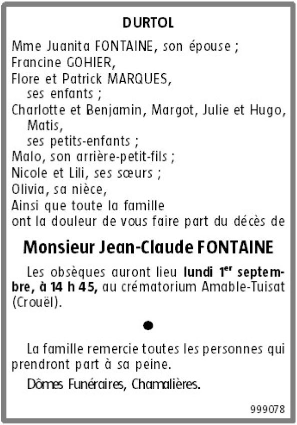 Monsieur Jean-Claude FONTAINE