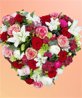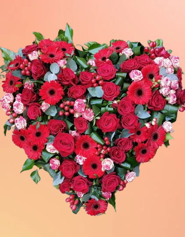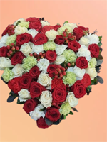Cœur avec roses rouges et blanches Photo non contractuelle